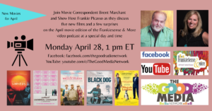 Join yours truly and show host Frankie Picasso for looks at five new films and a few additional surprises on the upcoming movie review edition of the Frankiesense & More video podcast, to begin airing at a special day and time, Monday April 28 at 1 pm ET. Tune in on Facebook or YouTube for all the lively chat and movie fun!