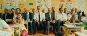 When a young boy is eager to show off his “dad,” a pilot, at his school’s career day, professional impersonator Matthias (Albrecht Schuch, seated, center) steps in to fill the bill, as seen in writer-director Bernhard Wenger’s debut feature, the quirky new Austrian comedy-drama-satire, “Peacock” (“Pfau – Bin ich echt?”), now playing theatrically. Photo © NGF Geyrhalterfilm-CALA Film-Albin Wildner, courtesy of Oscilloscope Laboratories.